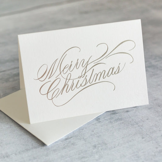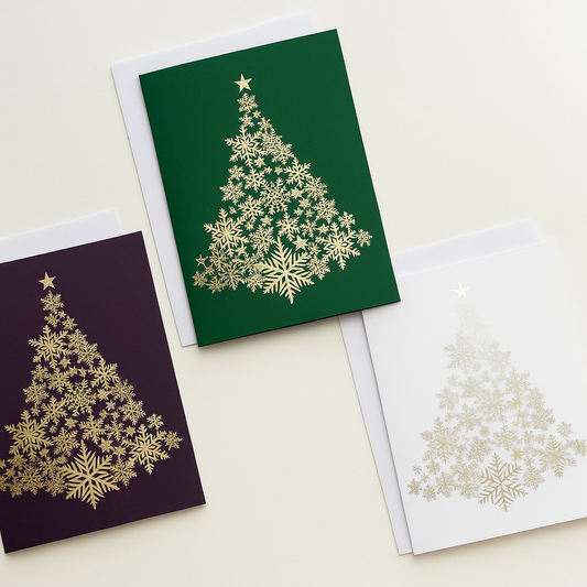 These bold, luxury cards feature a simple design of the Three Kings. Elegantly printed in a combination of lithographic black ink and hand-pressed foil, they are the perfect option for an eye-catching Christmas card. Our luxury Christmas card range showcases skilled traditional print processes and makes for stand out cards to send to your loved ones this year.