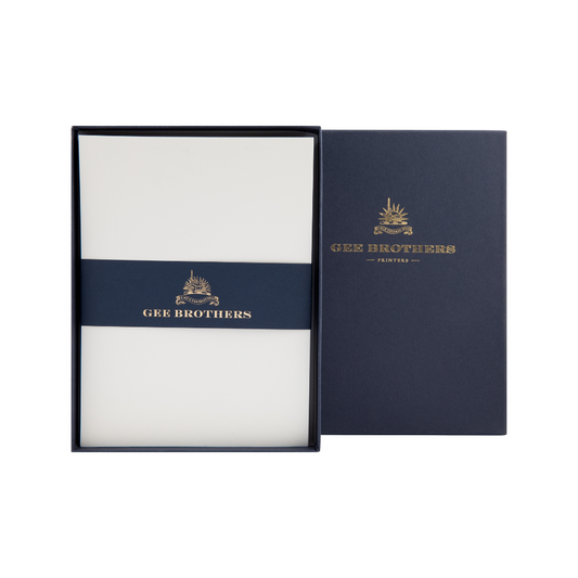 A stunning card combining several of our most luxurious processes. A blind-embossed snowflake design frames a hand-pressed silver foil message, with a bold, deep ‘panel-sunk’ border. Printed on thick white card, the blind embossed finish makes for a delicate, subtle design.