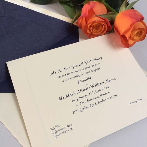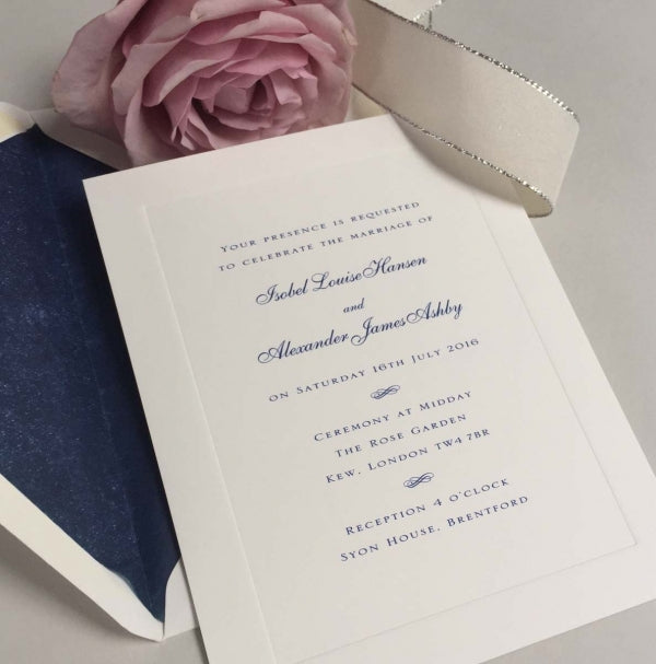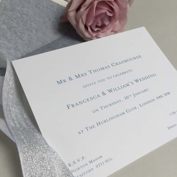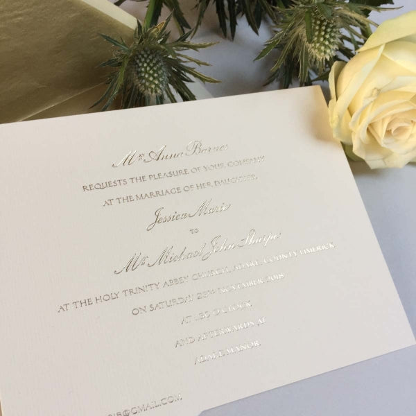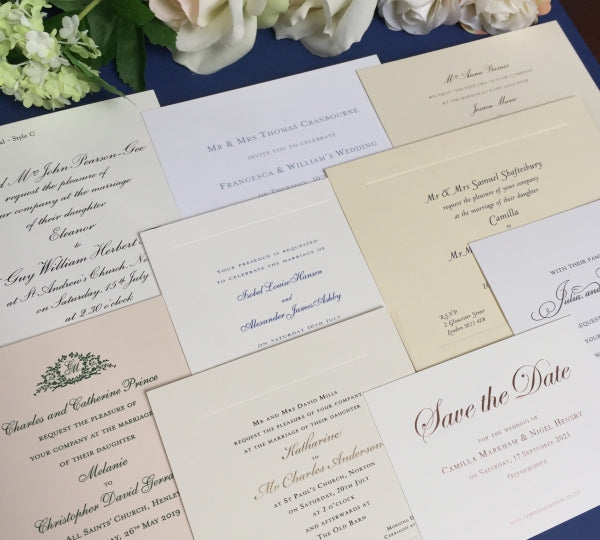 The pack includes a sample of our range of white, ivory and cream coloured cards, allowing you to see and feel the differences in card colours, thickness and printing processes, such as thermographically-raised or letterpress invitations.