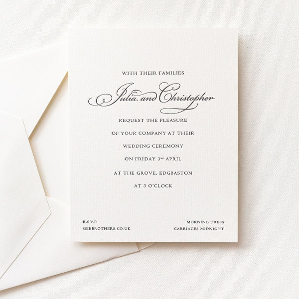 Gee Brothers’ Wedding Sample Pack includes samples of our most popular wedding invitation designs, together with useful information on typeface choices, printing processes and prices.