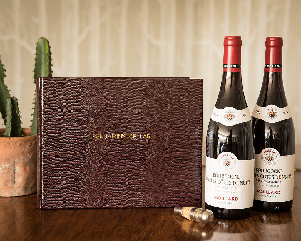It's a great alternative to the Chelsea or Marlborough Collections, available in two stunning colours and hand bound in embossed card with lizard print detail. Cellar Book is on the spine in foil blocking but the cover is kept plain for personalisation.