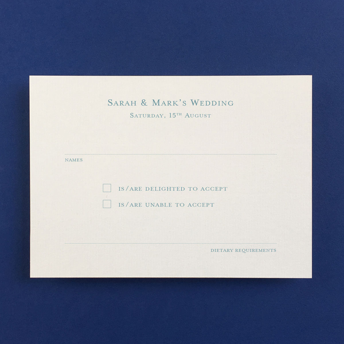 - Size: 1-sided reply card + reply envelope or 2-sided postcard-style reply card