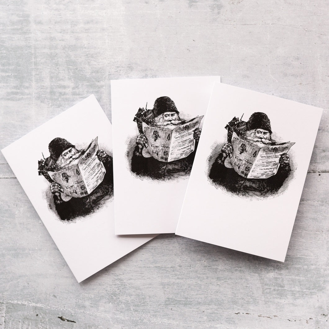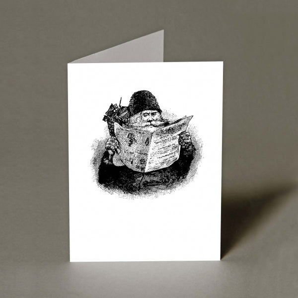 These jolly cards, featuring a vintage illustration of Father Christmas reading a paper, make a lovely option for your Christmas messages. This simple black and white image is a heart-warming one to send to your loved ones.