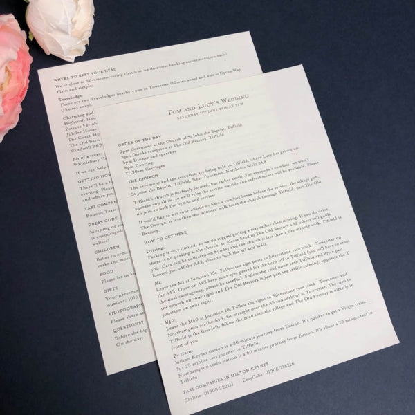 There can be a great deal of information to provide to your guests about your wedding day. Every wedding is unique and therefore the information will be too.