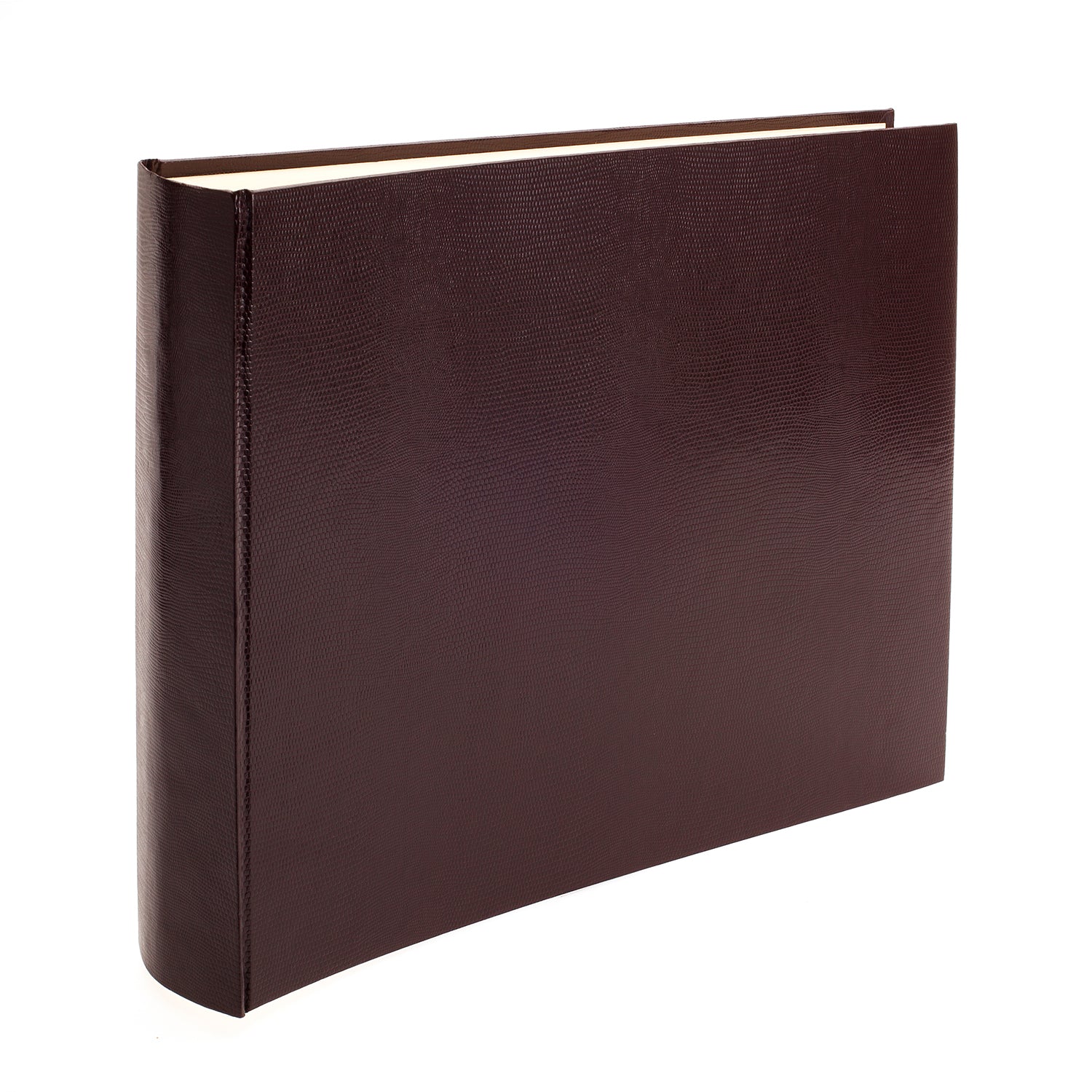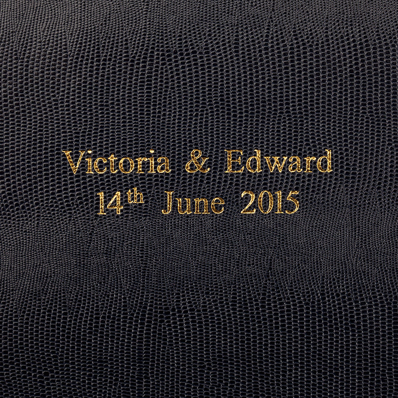 The Noble Macmillan Jubilee collection is made from embossed card with ‘lizard’ print detail which is a beautiful and long-lasting alternative to real leather. Each album is bound in their UK workshop. This album has cream pages, hand-stitched spines, head and tail bands, and is available in a range of colours. The albums can be personalised with a name, date or message in silver or gold leaf. These personalised albums make an excellent and thoughtful gift for any occasion.