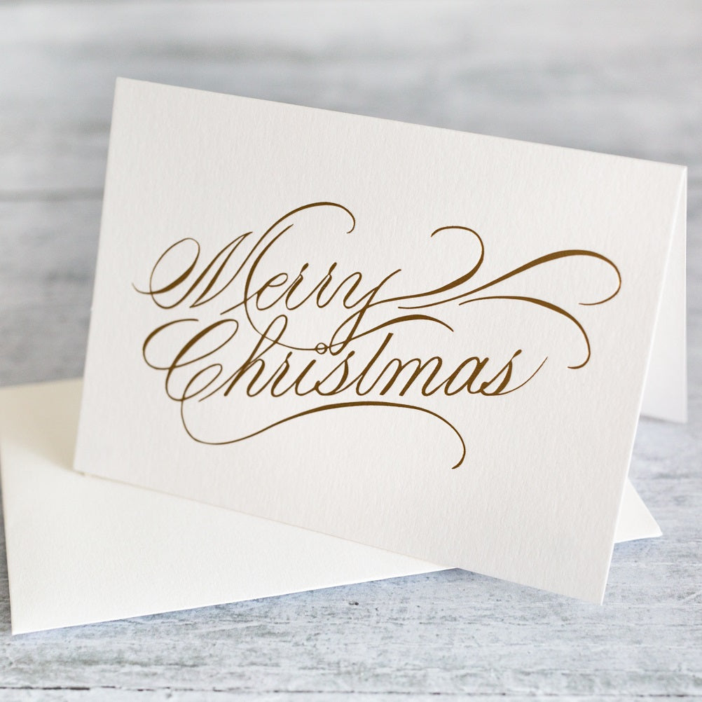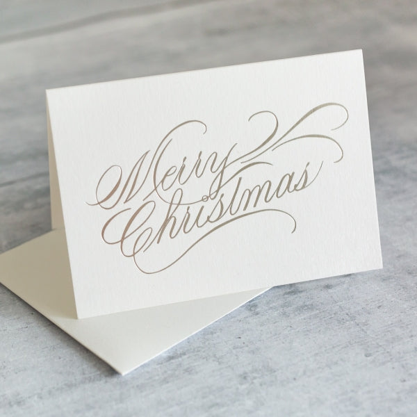 Designed by the wonderful Calligrapher Nadia Chin, these elegant Christmas cards are truly unique. Printed in gold or silver foil on pristine white card, with matching envelopes.