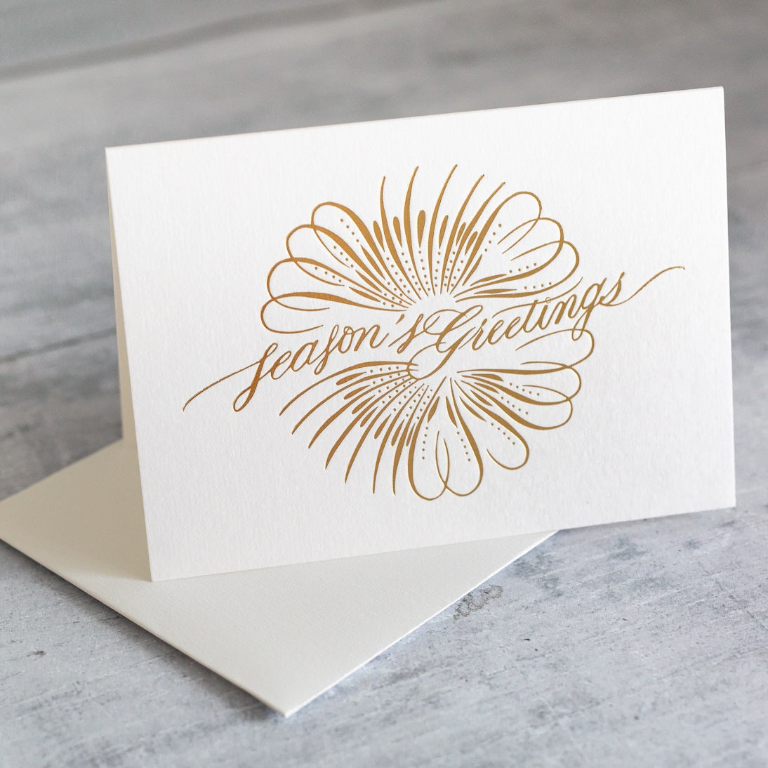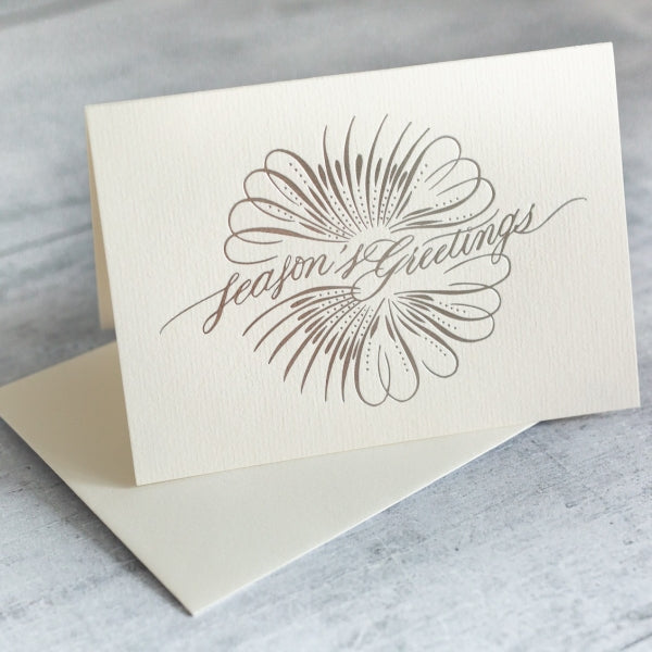 Designed by the wonderful Calligrapher Nadia Chin, these elegant Christmas cards are truly unique. Printed in gold or silver foil on high white laid card, with matching envelopes.